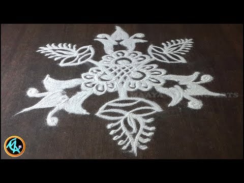 அழகான சிறிய கோலம், புள்ளிகள் இல்லாமல் இடுவதற்கு மிக எளிதானது. பூஜை அறை மற்றும் வீட்டு வாசலில் இடுவதற்கு ஏற்றது